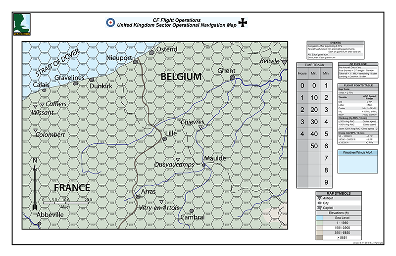 As in the Tactical Scale game, the Flight Operations scale varies. In all modules each Flight Ops game turn is 10 minutes. However, events such as take off, form up and performing missions vary in duration. Each flight point covers 2.5 miles